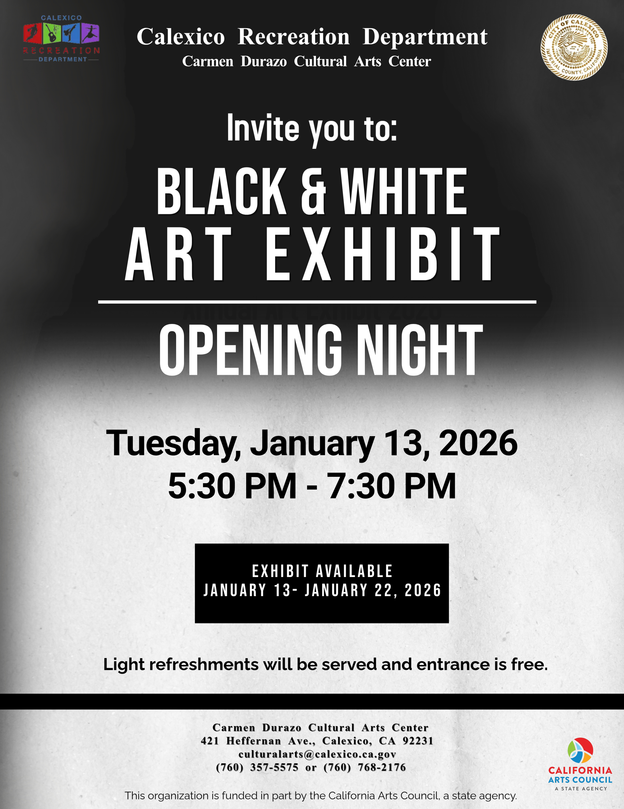 The Carmen Durazo Cultural Arts Center holds various art exhibits throughout the year.