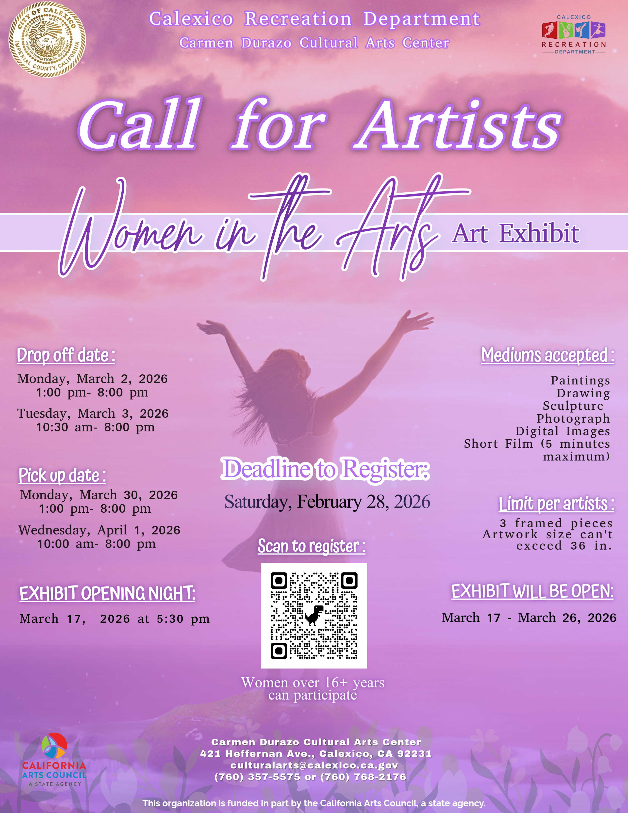 Our Women in the Arts Art Exhibit 2026 Call for Artists is now open! Please use the following link to register or scan the QR code.